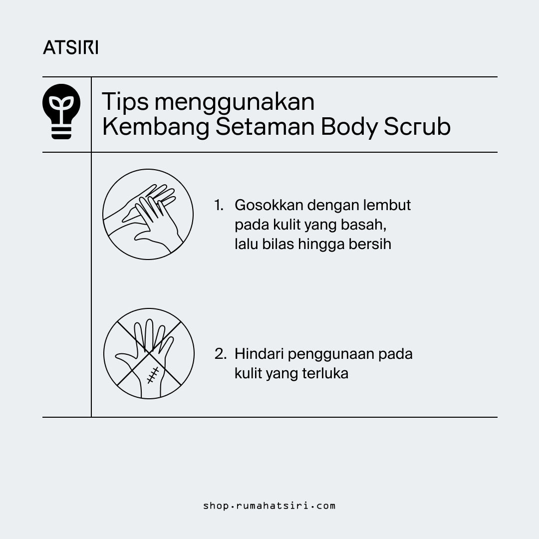 Kembang Setaman: Jasmine Body Scrub adalah scrub tubuh dengan aroma khas Atsiri Jawa dari bunga melati. Gunakan untuk membantu mengangkat sel kulit mati dan menghasilkan kulit yang bersih dengan aroma floral yang menenangkan.