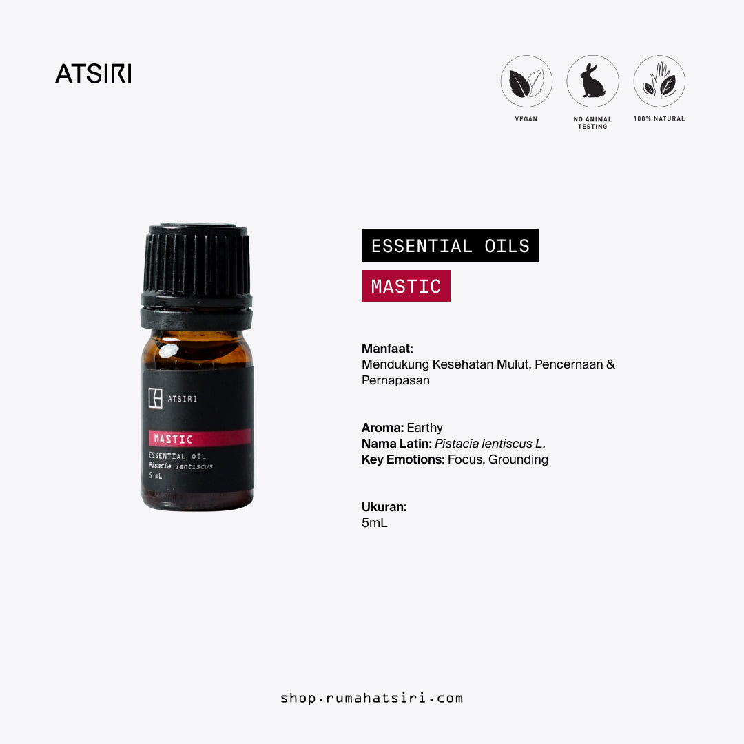 Mastic atau Damar Wangi secara tradisional digunakan untuk mendukung kesehatan pencernaan. Damar juga membantu menjaga kebersihan mulut dan menyegarkan nafas. Minyak ini memiliki sifat antimikroba dan antiinflamasi yang dapat membantu melawan bakteri berbahaya di mulut, menenangkan kulit yang teriritasi, meredakan batuk dan hidung tersumbat.